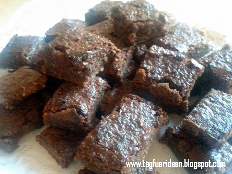 Ich habe die Brownies zwei Tage vorher gemacht… sie schmecken dann fast noch besser.