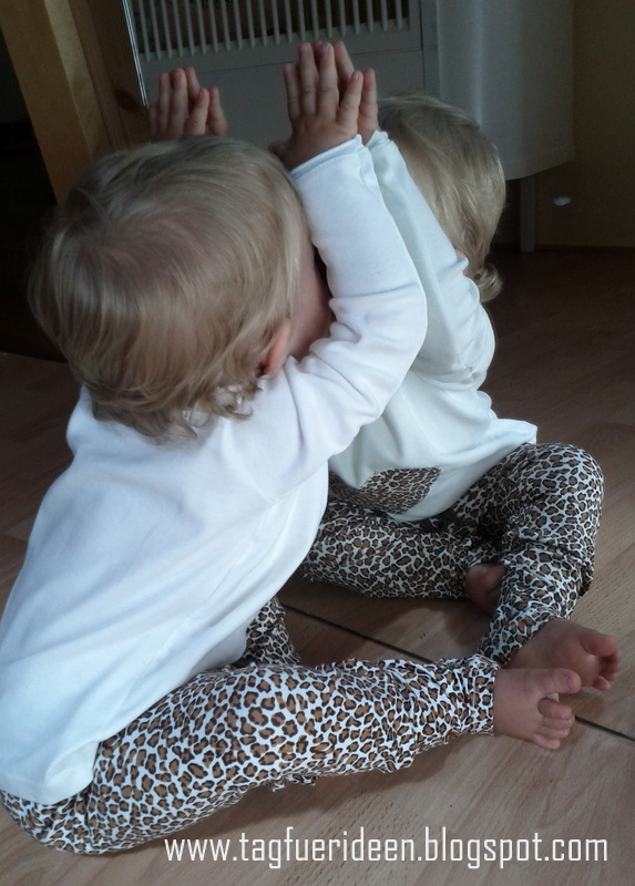 Lieblingsbeschäftigung: immer noch dem „anderen“ Baby (im Spiegel) Bussi geben 🙂