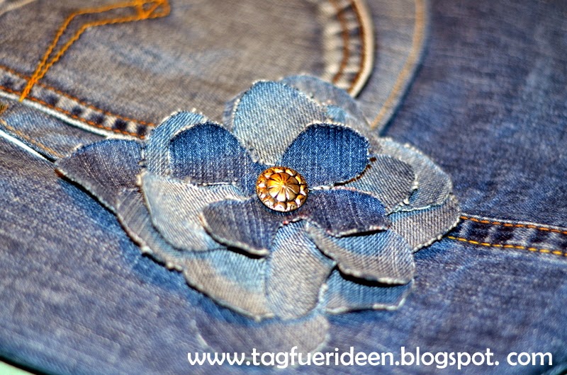 Ich mag diese Jeansrecycling-Taschen immer sehr! Das Blümchen ist ein toller Hingucker!!