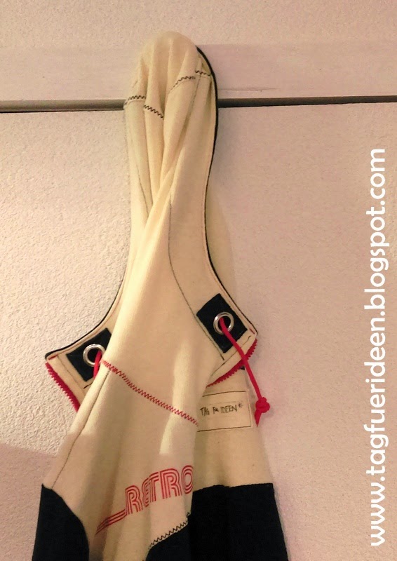 Sieht toll aus ! Das ist v.a. mal eine günstigere Alternative, als die gewebten Labels zu kaufen…. Die Lederstücken mit den Löchern links und rechts; die sind aber gekauft, oder? Die gefallen mir nämlich richtig gut… !!!