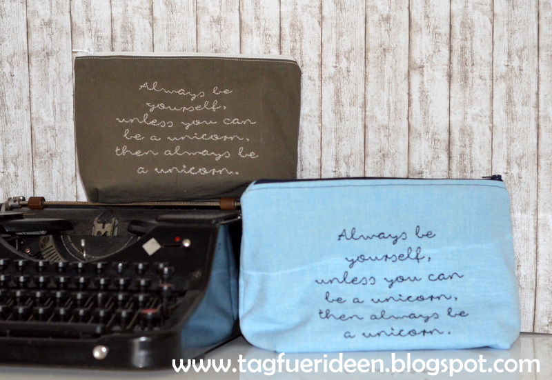 Die Kosmetiktäschchen sind wunderschön. Der Spruch ist genial. Mir gefallen sie sehr gut. Tolle Geschenkidee. Schönen Tag.Liebe Grüße