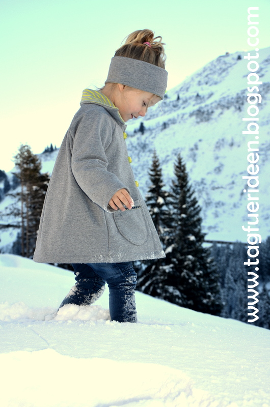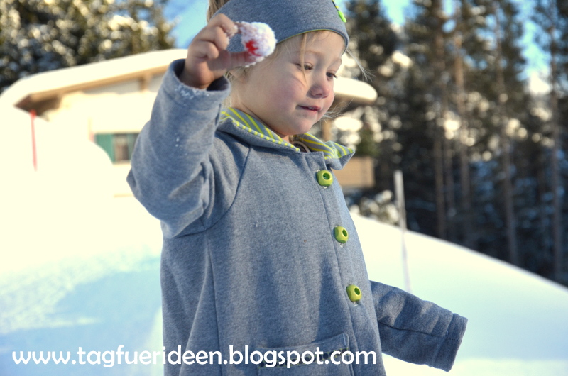 Wow, ist die Jacke schön 🙂 und die kleine Maus hat anscheinend viiiel Spass sowohl mit der Jacke als auch mit dem Schee…