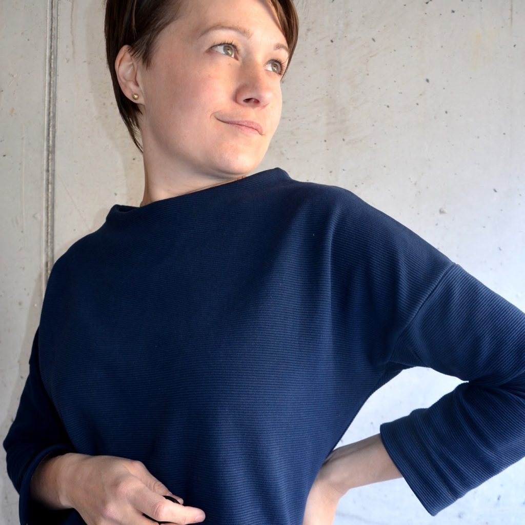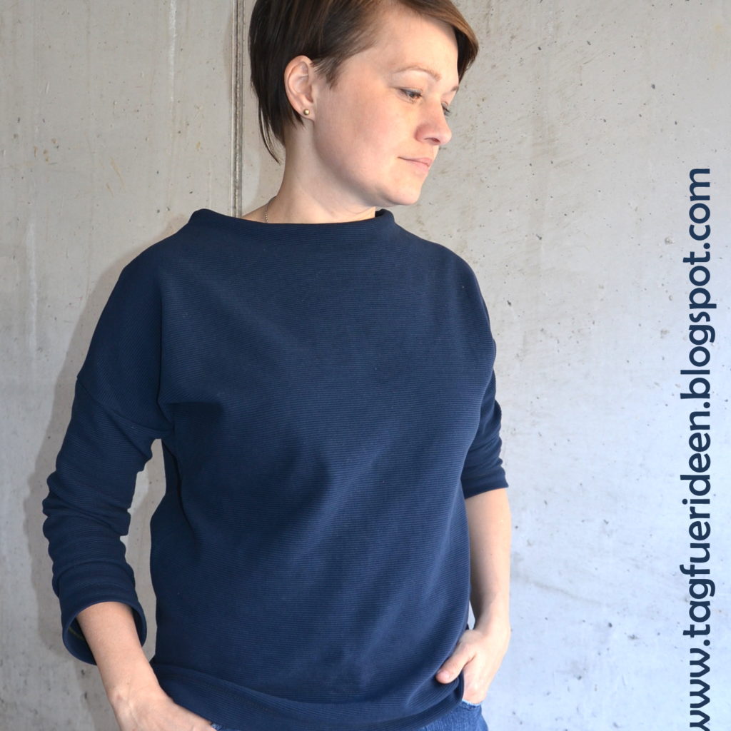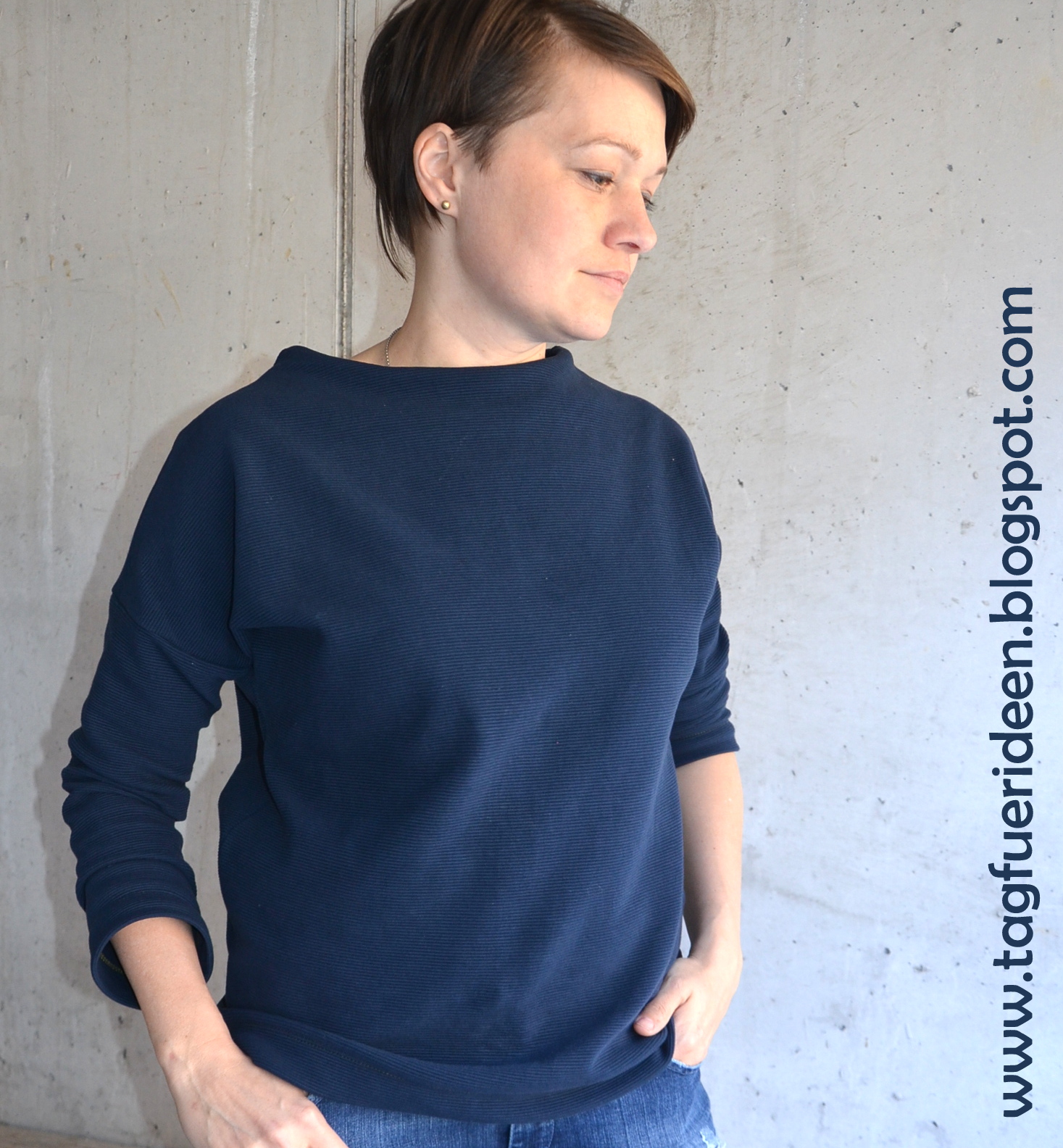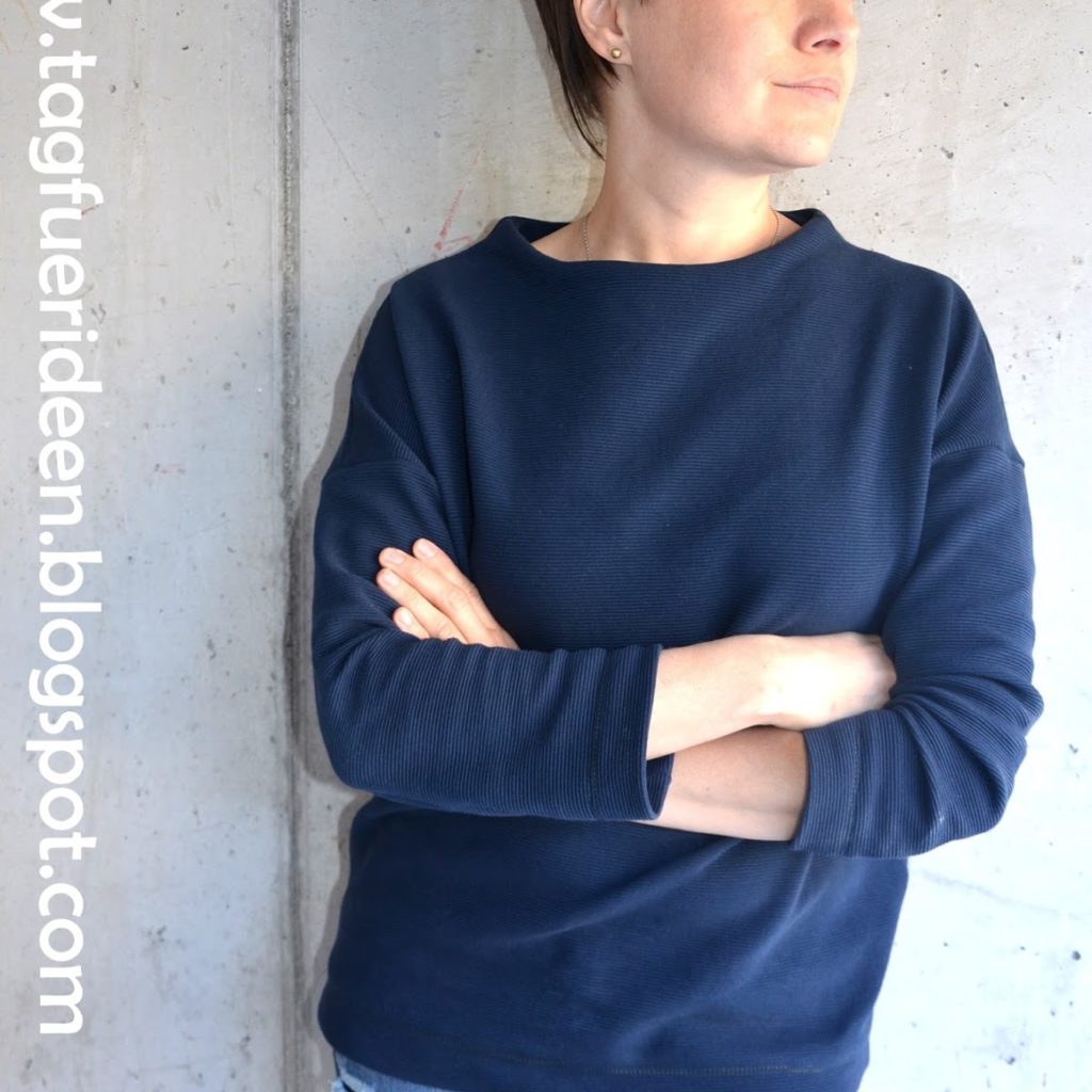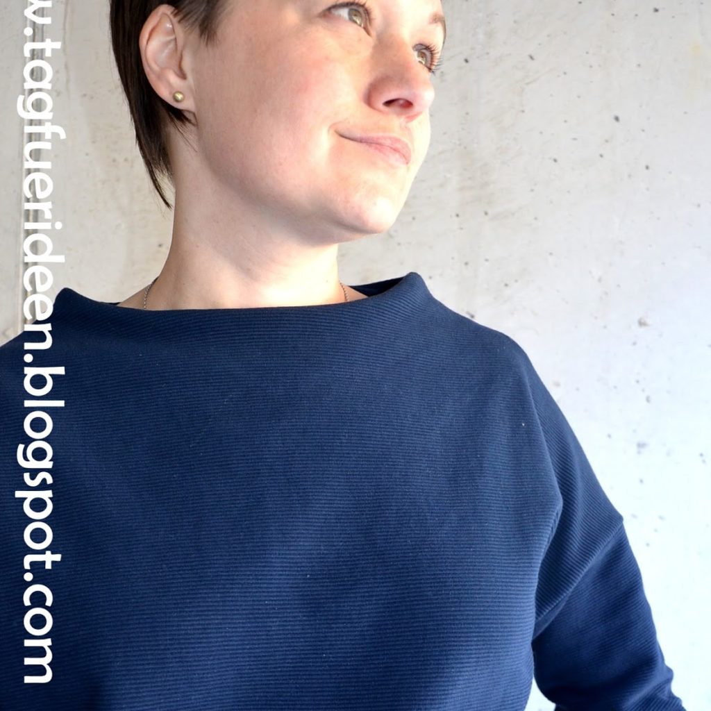 Ich habe ja die Rippe in hellblau gekauft und mir daraus einen Karl genäht. Dieser Stoff ist für die Stehkragen echt ganz wunderbar geeignet.Gefällt mir unglaublich gut!