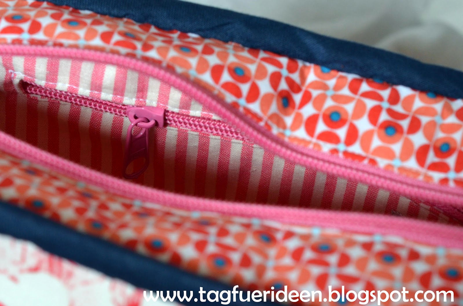 Innen habe ich gestreiften Stoff vom Flohmarkt verwendet,