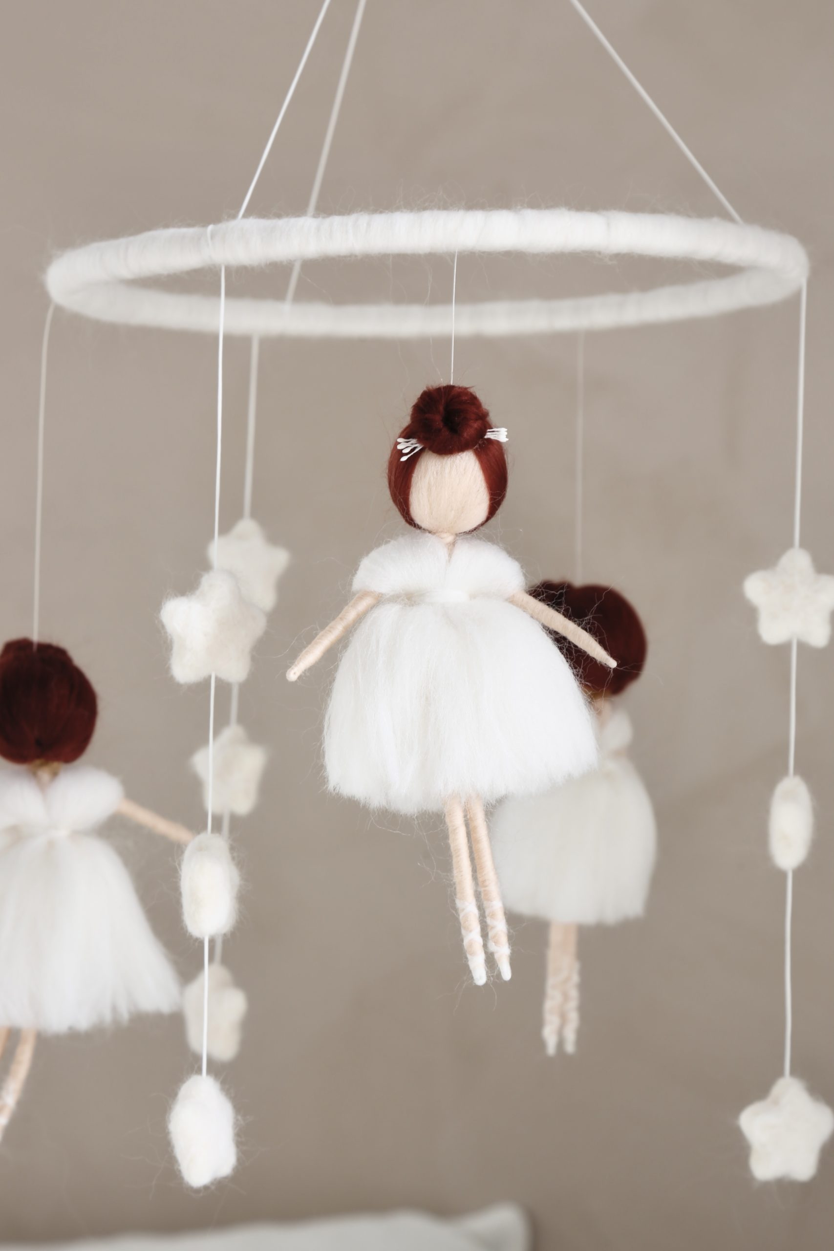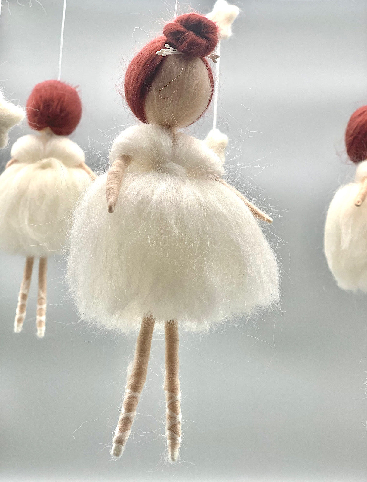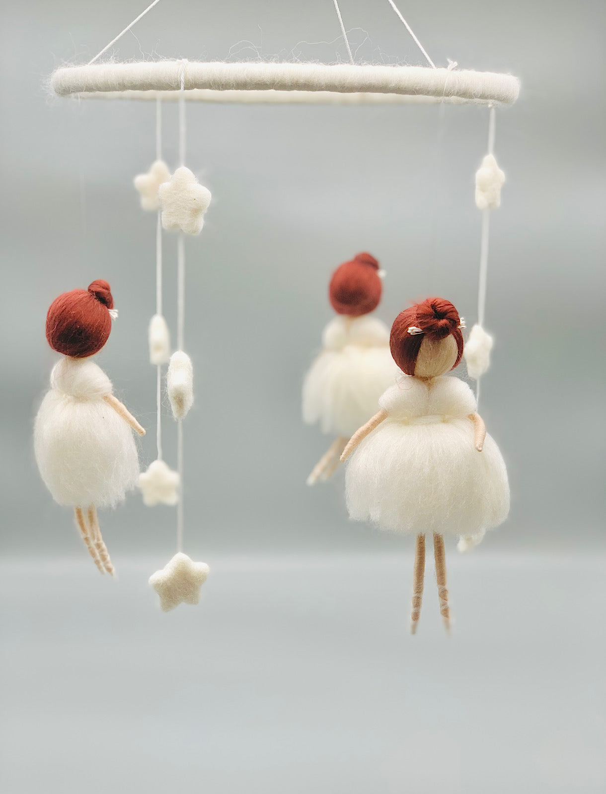 Die wunderschönen Schutzengel sind mit einer speziellen Nadeltechnik zu 100% handgefertigt, so dass jedes Produkt abweichen kann. Drei Stück dieser süßen Engel und Sterne schmücken dieses süße Mobile.