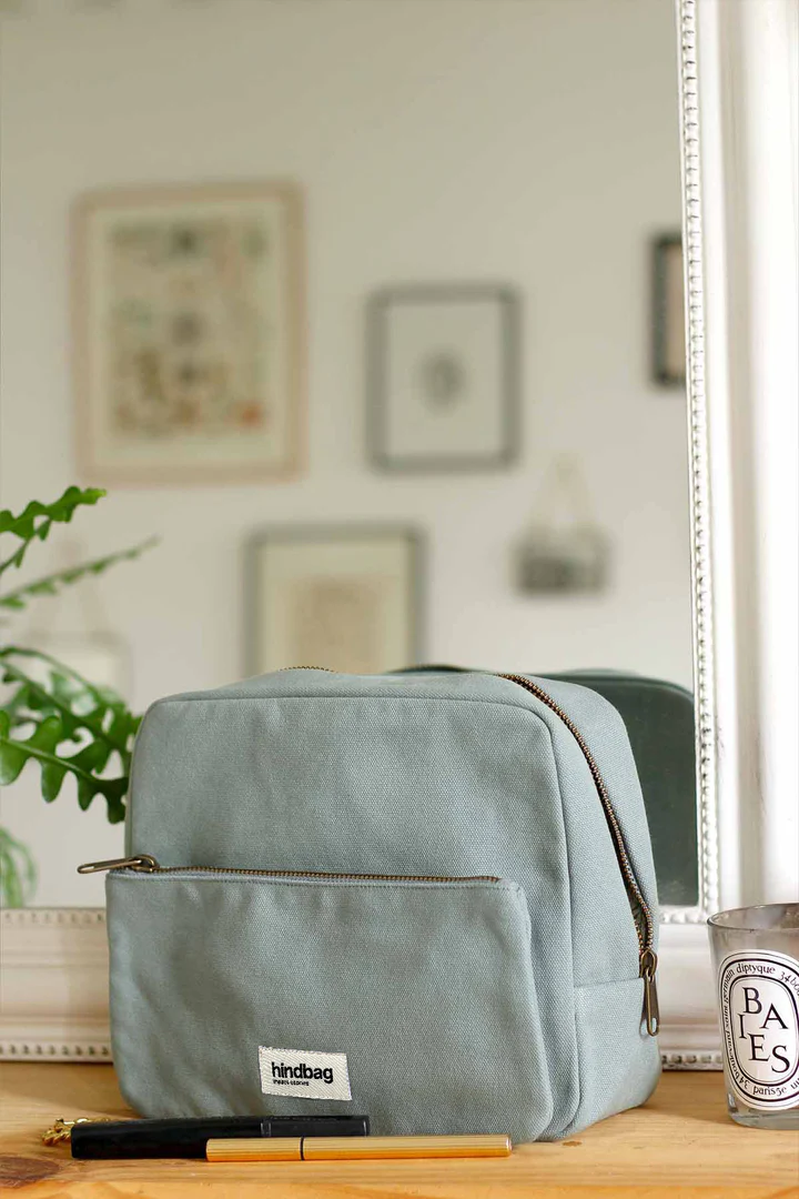 Alix, das ist unsere, für lange Reisen, ideale Kosmetiktasche im XL Format. Sie besteht aus zwei Taschen, die durch Magnete miteinander verbunden sind. Die große Tasche hat eine breite Öffnung und wurde so entworfen, dass du dein Shampoo, Duschgel oder Parfüm problemlos mitnehmen kannst. Ihre Mesh -Trennwand ermöglicht dir, alle kleinen Essentials (Pflaster, Wattepads usw.) unterwegs griffbereit zu haben. Die zweite Tasche ist für alles gedacht, was zerbrechlich (zum Beispiel Make-Up) oder scharf (Rasierer, Nagelschere) ist. Für jede Farbe gibt es ein farblich abgestimmtes Innenfutter aus Bio-Baumwolle.