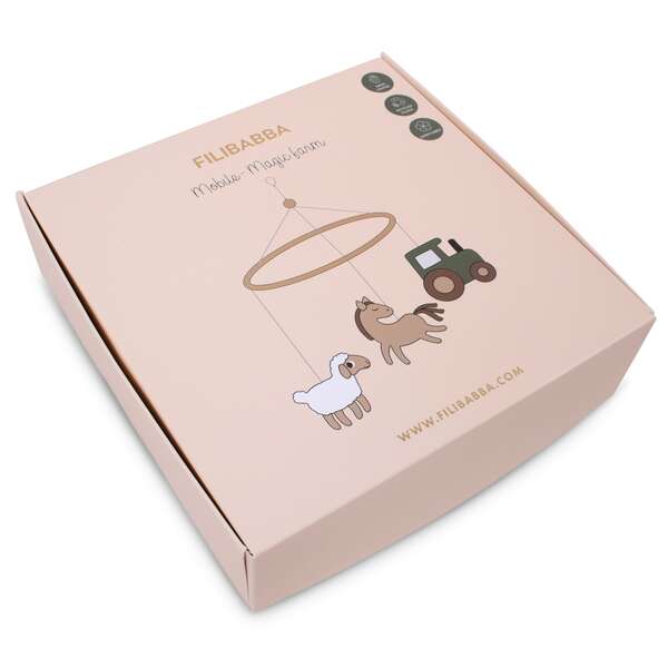 Die Figuren sind handgefertigt und mit vielen feinen Details versehen, die sowohl Kindern als auch Eltern Freude bereiten. Platzieren Sie das Mobile über dem Laufstall, am Wickeltisch oder im Kinderzimmer. Das Mobile schafft mit Sicherheit eine gemütliche Atmosphäre und fördert gleichzeitig die Fähigkeit des Babys, sich zu konzentrieren und einem Objekt mit den Augen zu folgen. Ein Mobile ist ein perfektes Geschenk zur Babyparty oder zur Taufe, da es das Kind über viele Jahre begleiten und Freude bereiten wird – und zudem eine perfekte Ergänzung für jedes Kinderzimmer ist.