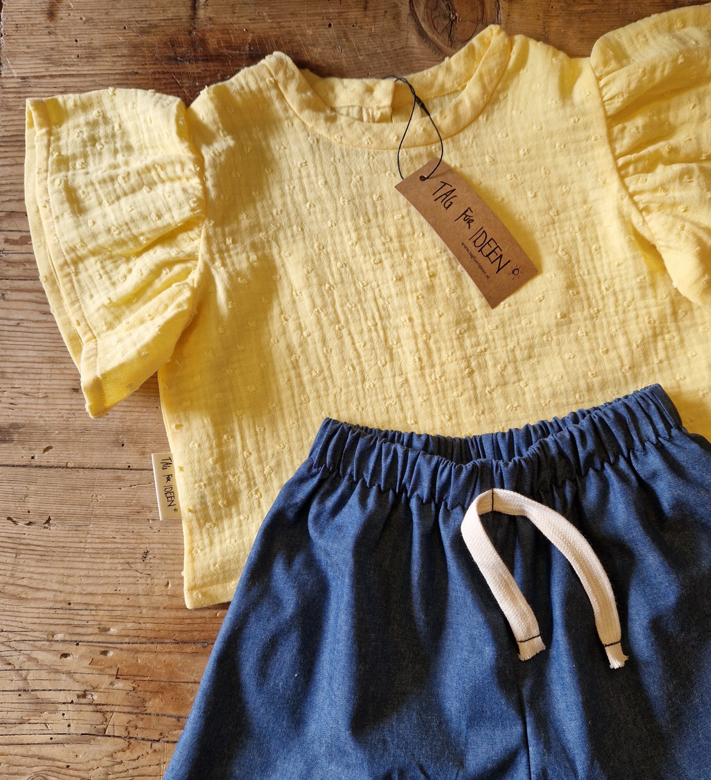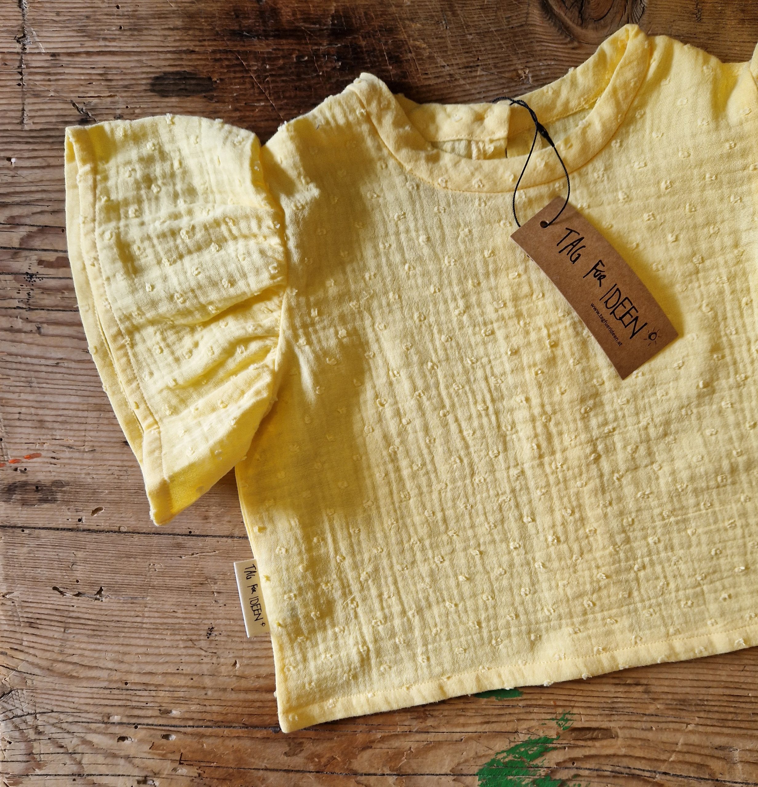 Musselin Bluse mit Flügelärmel „zitronengelb“