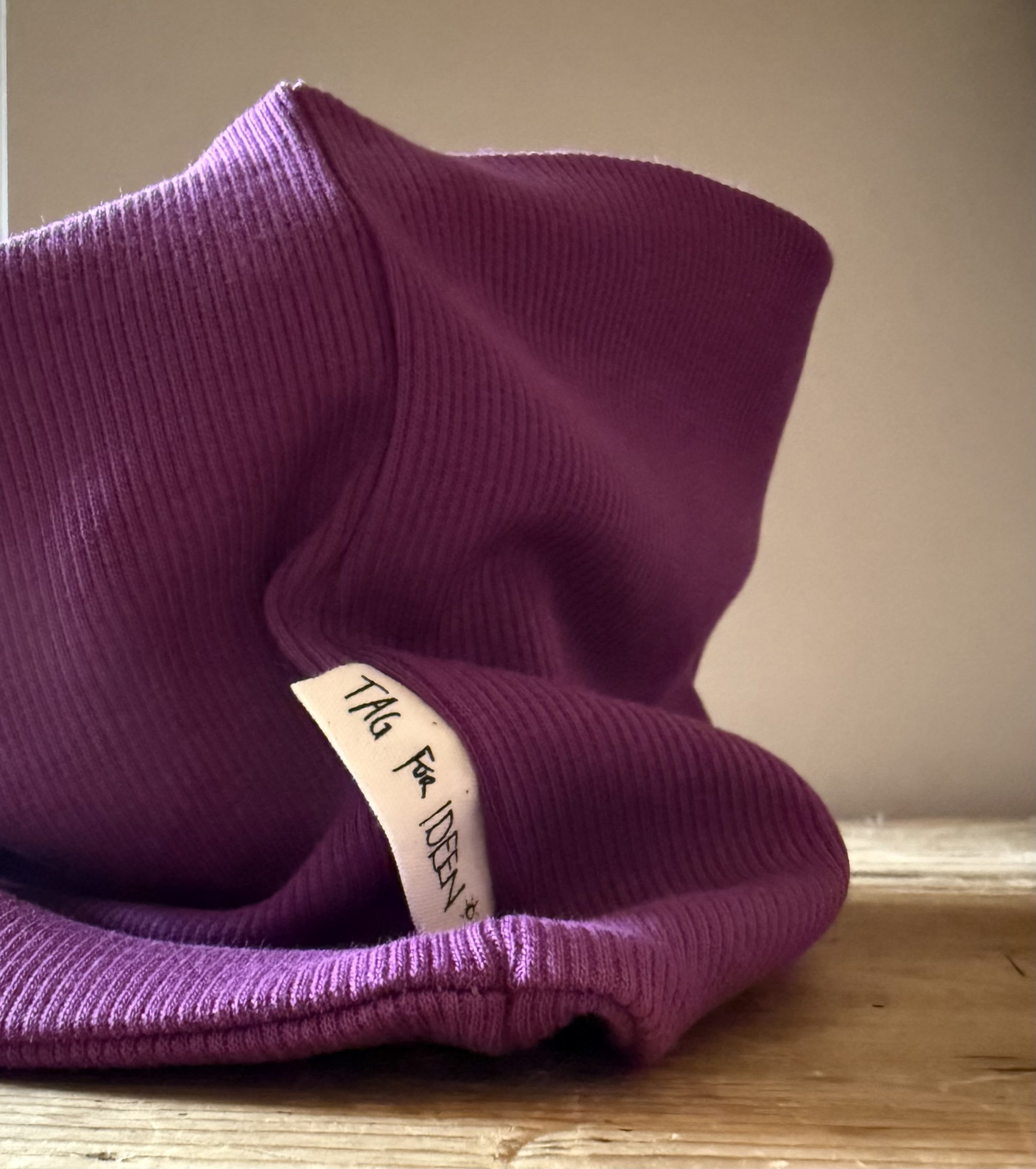 Der Loop ist aus fein geripptem, elastischem Stoff, ist am Hals anliegend und hält kuschelig warm.