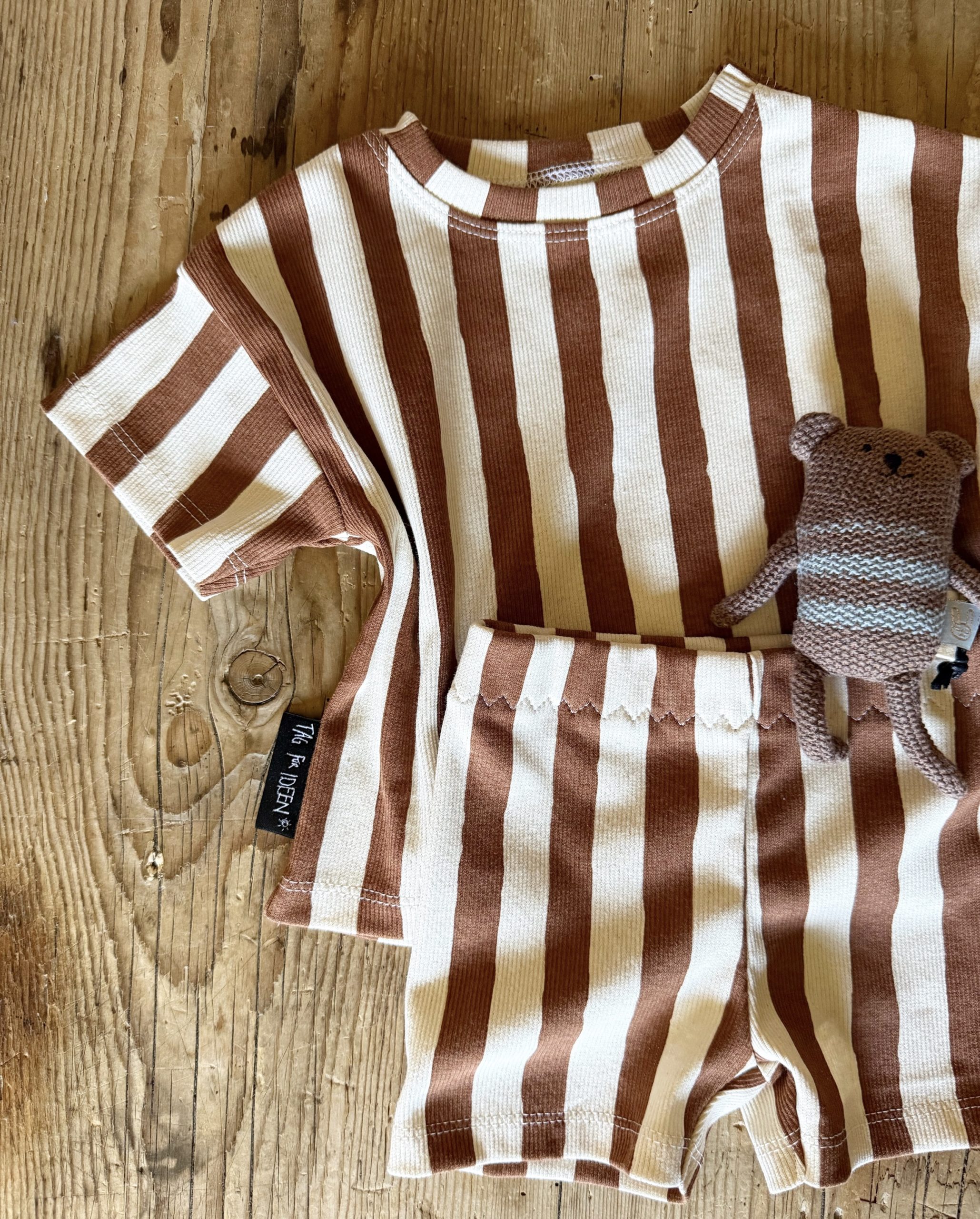Wir lieben Streifen, und wir lieben dieses coole braun. Und ein komplettes Set daraus ist mal richtig schön zeitlos, weich und perfekt für kleine – und auch große – Entdecker!