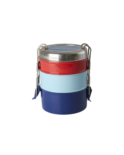 Diese runde, 3-lagige Edelstahl-Brotdose ist perfekt, um Snacks, Salate oder kleine Mahlzeiten getrennt und frisch zu halten.