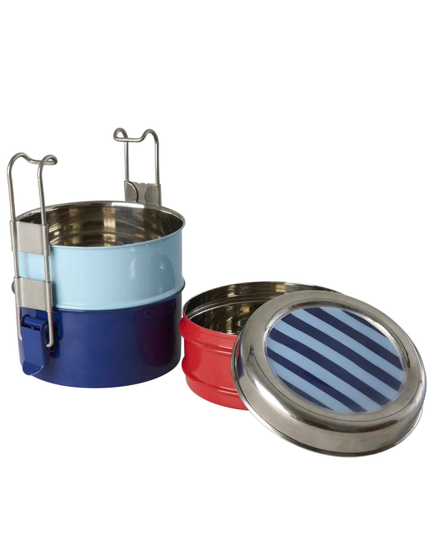 Runde Edelstahl Brotdose mehrfarbig Streifen