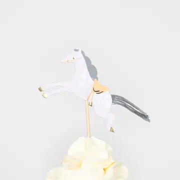 Es enthält clever gestaltete Pferde-Topper mit tollen Quasten-Schwänzen und gestreiften Cupcake-Förmchen.
