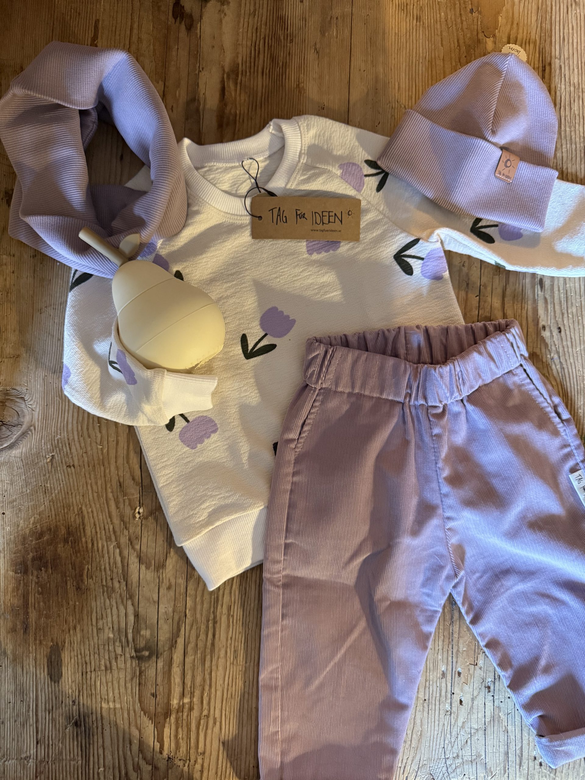 Damit die Farben schön frisch bleiben und der Stoff weich, bitte auch keinen Trockner verwenden.